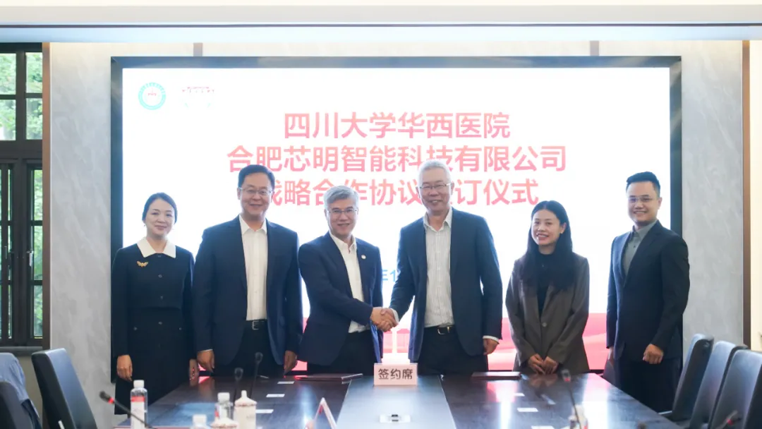 华西医院院长罗凤鸣、常务副院长黄进、院长办公室主任赵欣,芯明董事长韩晓春、副总裁宁娅姗、项目总监卢瑜等出席并见证签约。