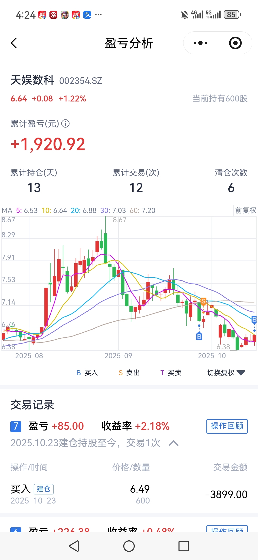 $天娱数科(SZ002354)$ 赚了包烟钱