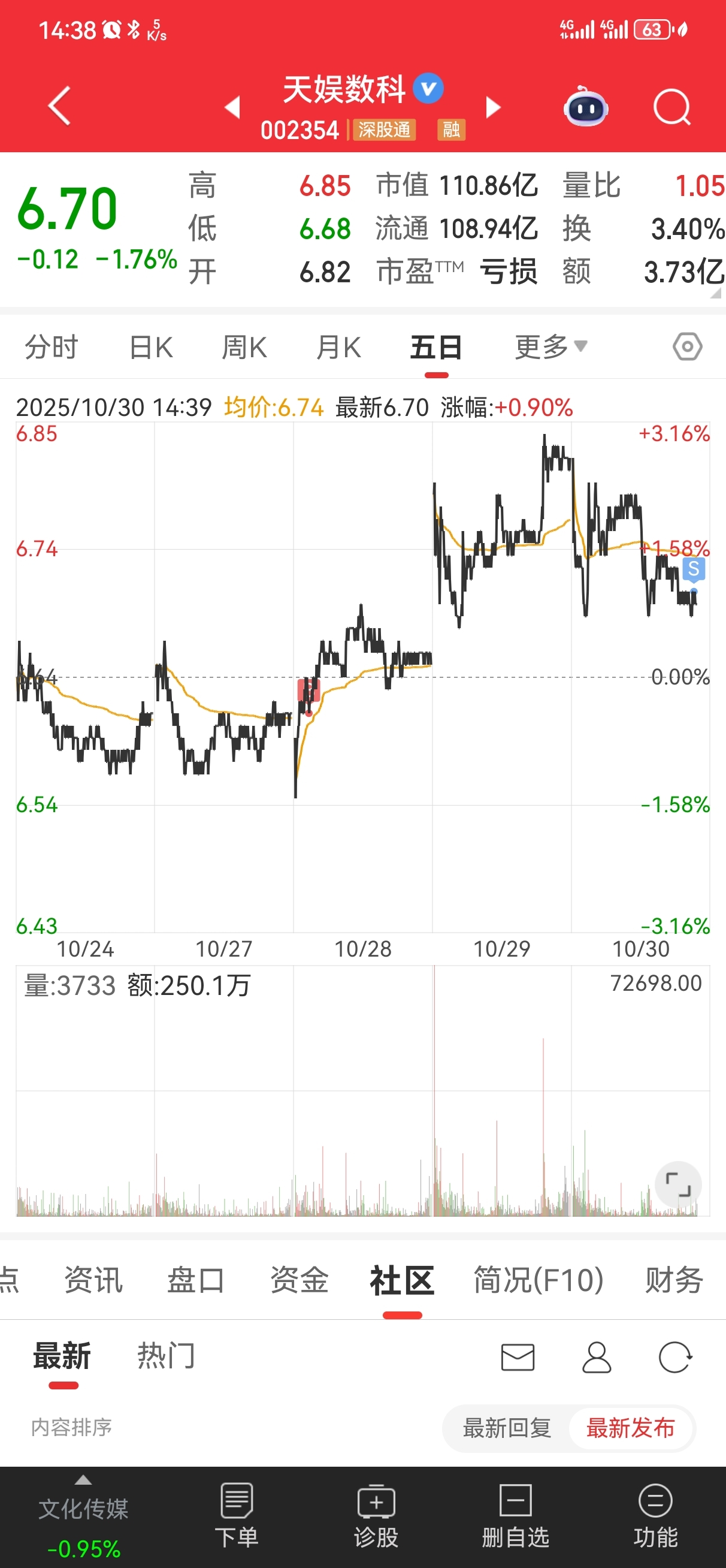 $天娱数科(SZ002354)$ 撤了,搞包烟钱