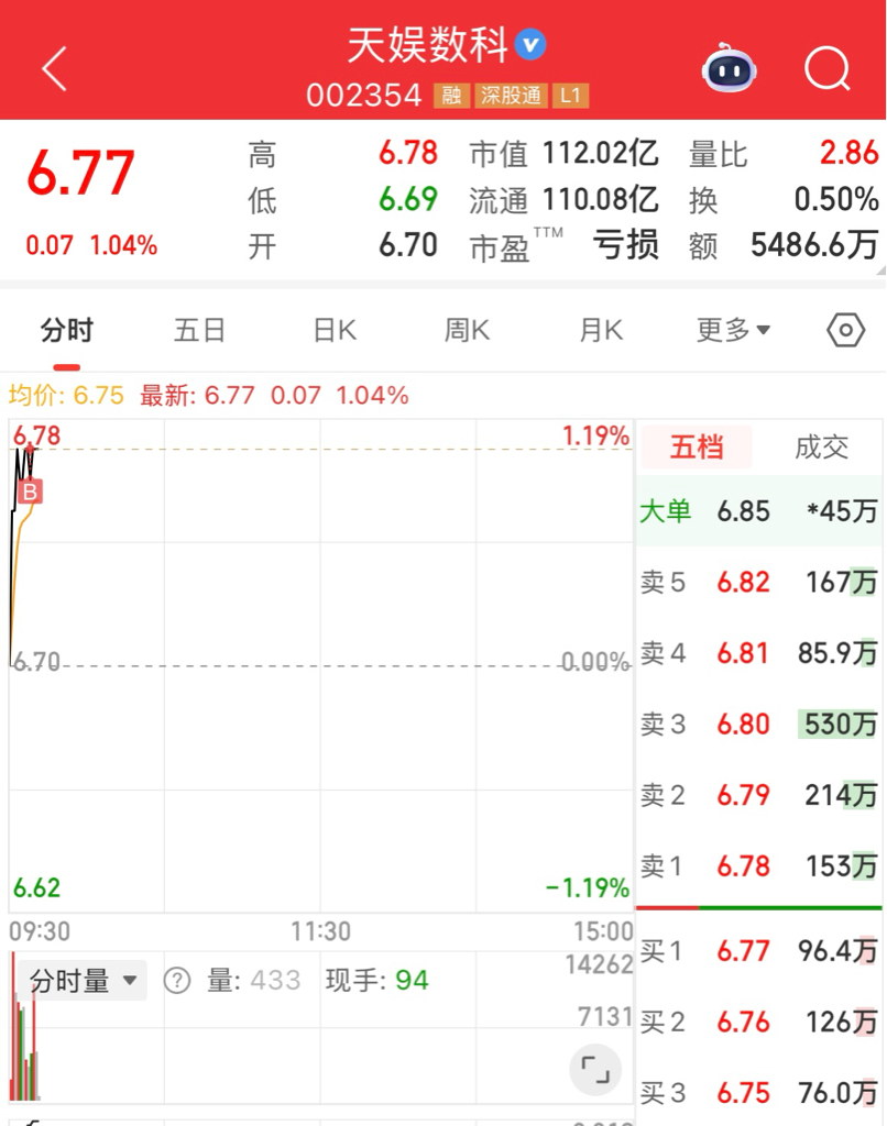 $天娱数科(SZ002354)$ 就喜欢来追高