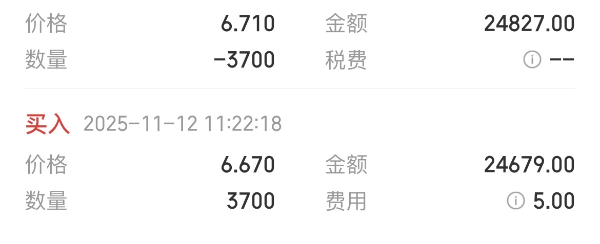 $天娱数科(SZ002354)$ 昨天6.67进的,今早T早了,t了100多块钱左右,我的要求也不高,每天在天娱T一次,每次T5分钱,每次T100多块钱的零花钱然后把这100多转出到银行卡当零花钱用,这要求不高吧
