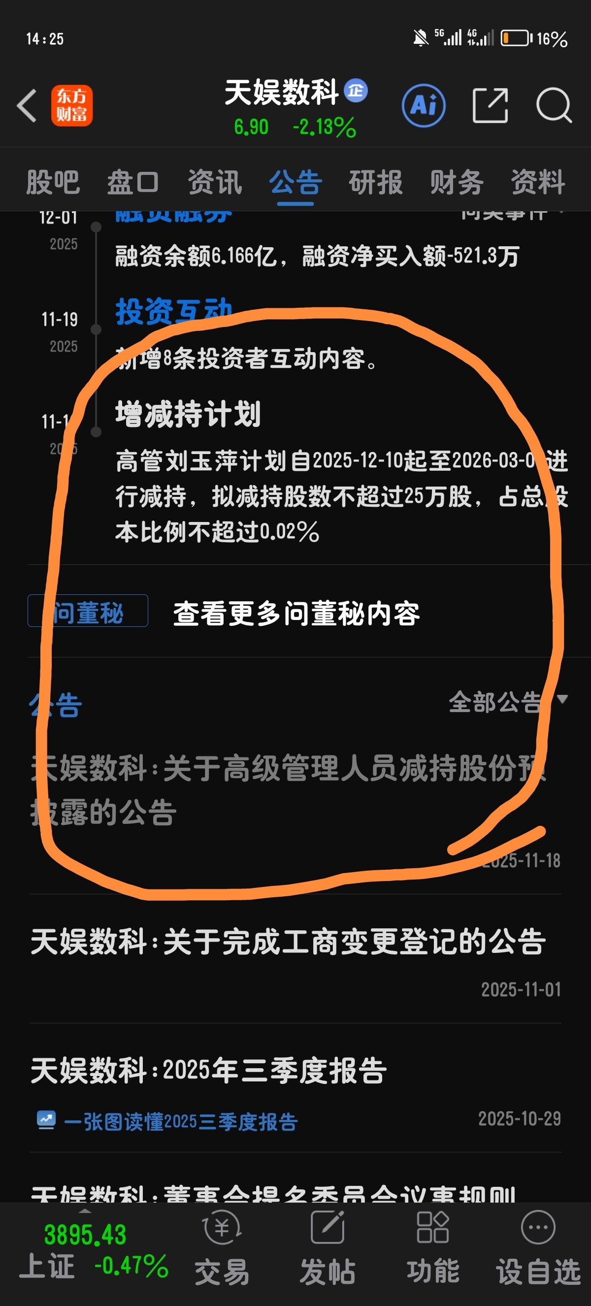 $天娱数科(SZ002354)$ 弱势减持,加速暴跌