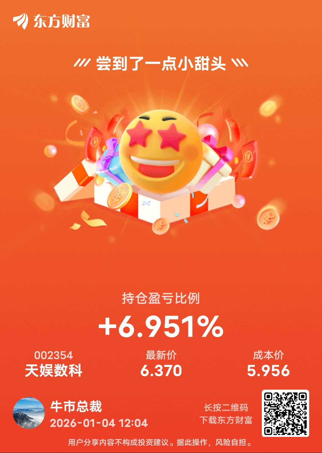 $天娱数科(SZ002354)$ 成本我都做到5.95了,静等花开。