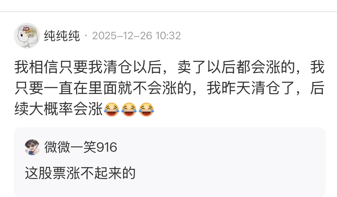 $天娱数科(SZ002354)$ 我已经无数次证明,只要我清仓的票以后都会涨,天娱我6.20清的仓,自从我6.20清仓后就开启了上涨之路,下次你们跟着我反着来就行,真的,无数次的验证,只要我清仓过后的票都会大涨翻倍的,已经用无数个票证明过了