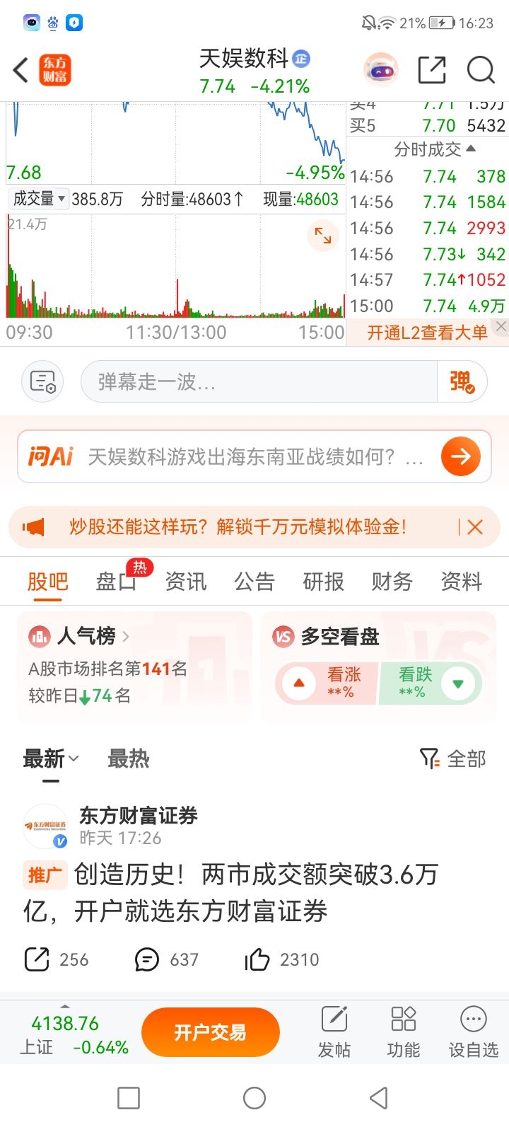 $天娱数科(SZ002354)$ 明显的就是故意做空,17连阳了做空的好不容易“年底任务完”成了……