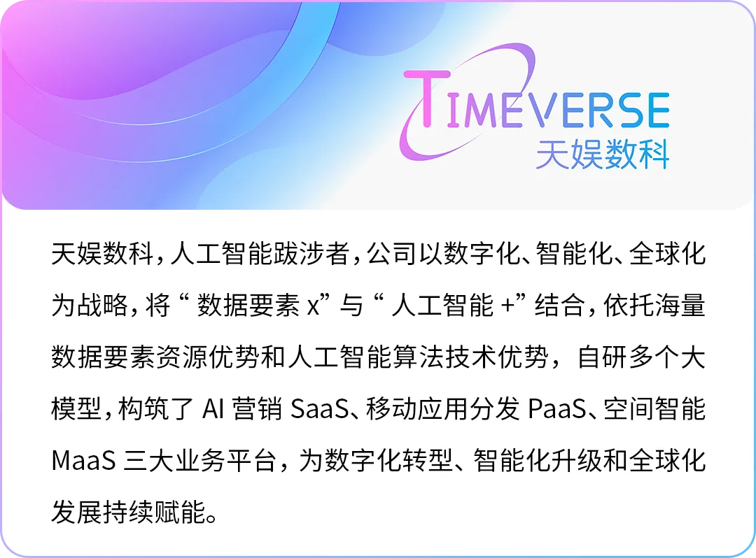 未来,天娱数科将继续以“天星”基座模型为锚点,持续孵化与深耕垂直行业模型,推动AI从技术能力向产业价值扎实转化,深化“AI应用+”在实体经济中的生态布局。
