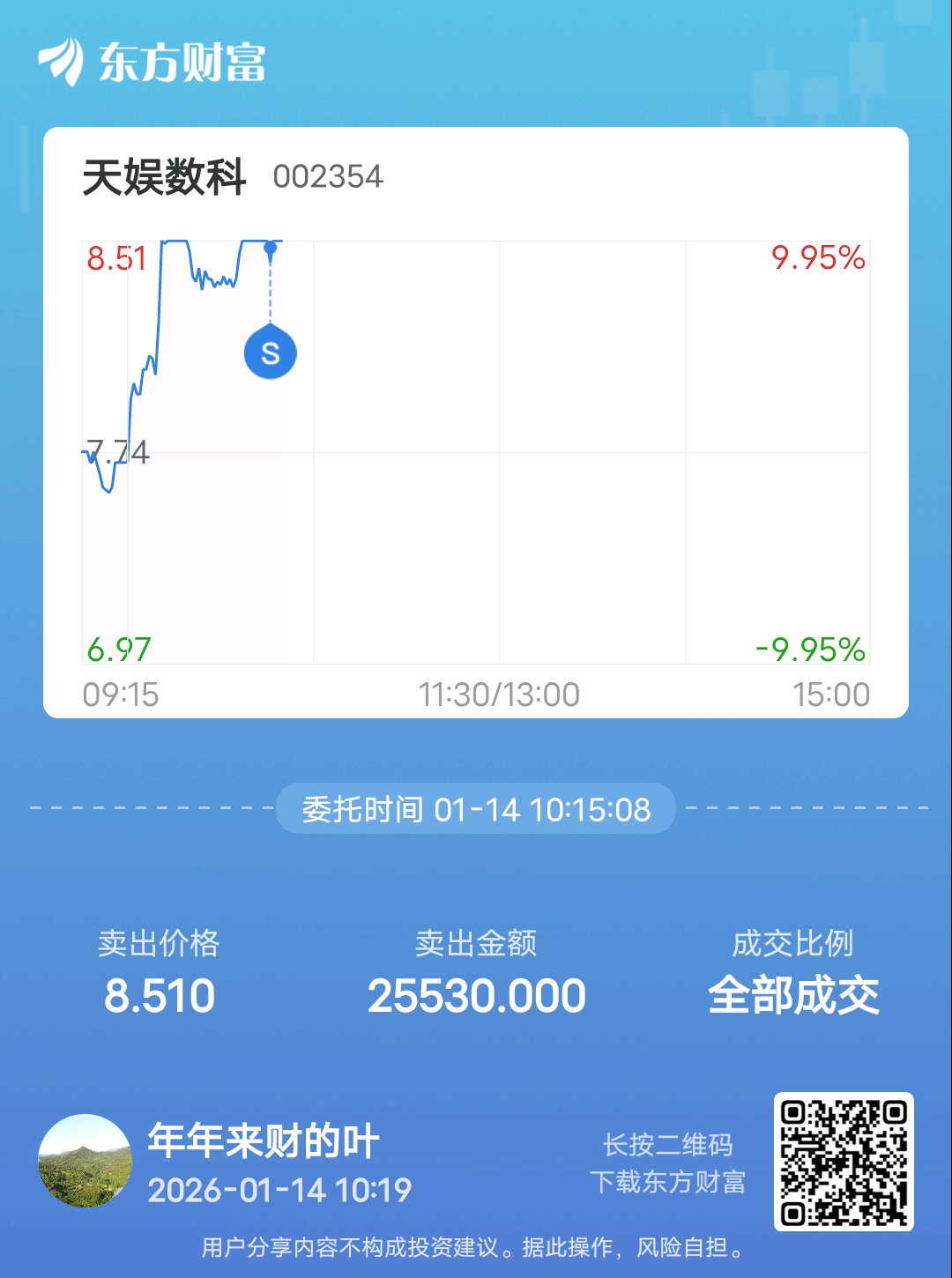$天娱数科(SZ00235委托标的:买卖方向:笔记:4)$成功被洗了