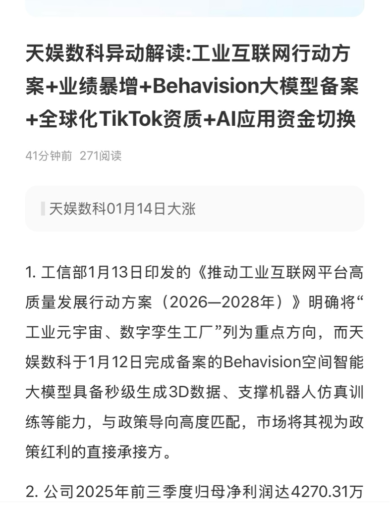$天娱数科(SZ002354)$ Ai应用叠加人行机器人叠加广告大模型,你们信不信到后面炒低空的时候我还能把天娱和低空经济扯上关系。