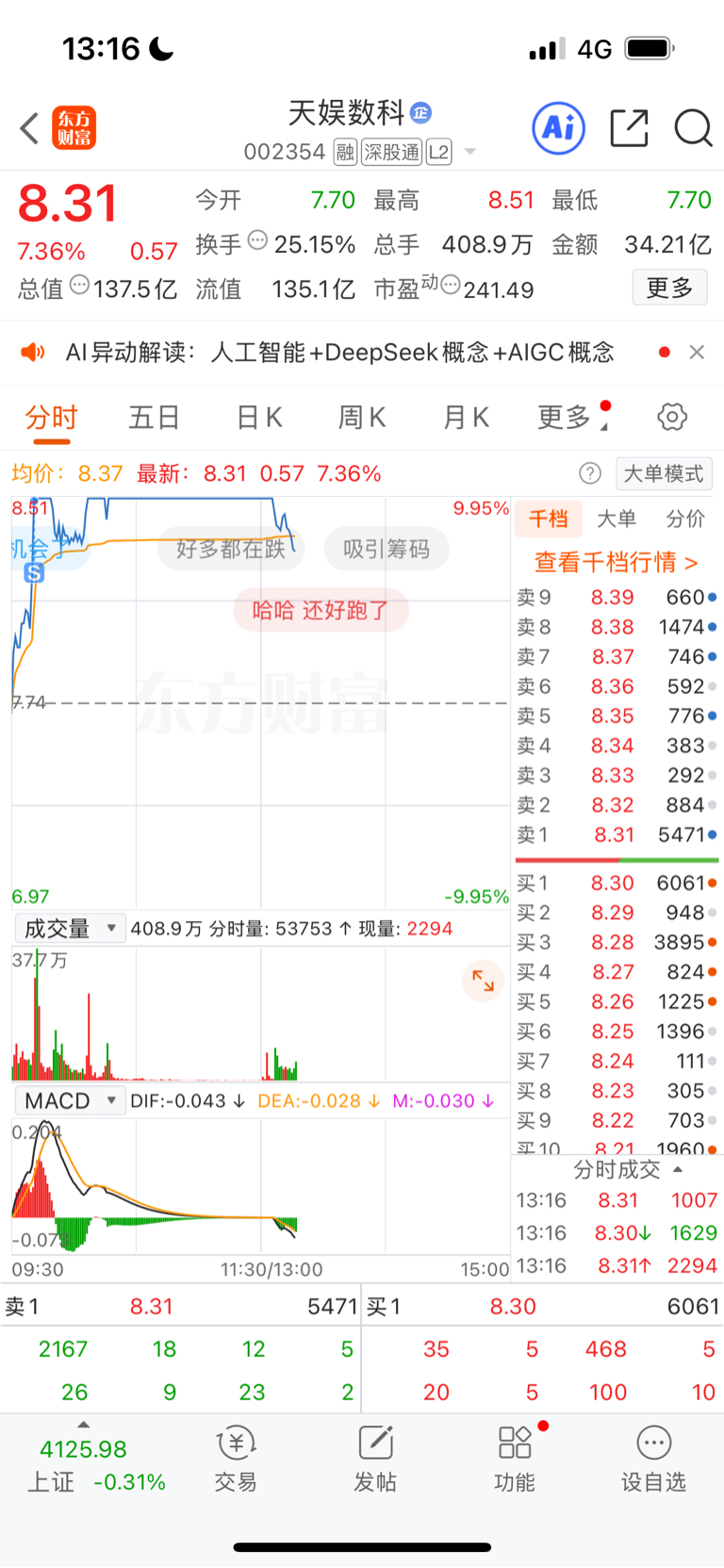 早上没时间看盘,直接挂了差一分钱涨停的价格。后来看见开板了,也没买入。虽然没回本