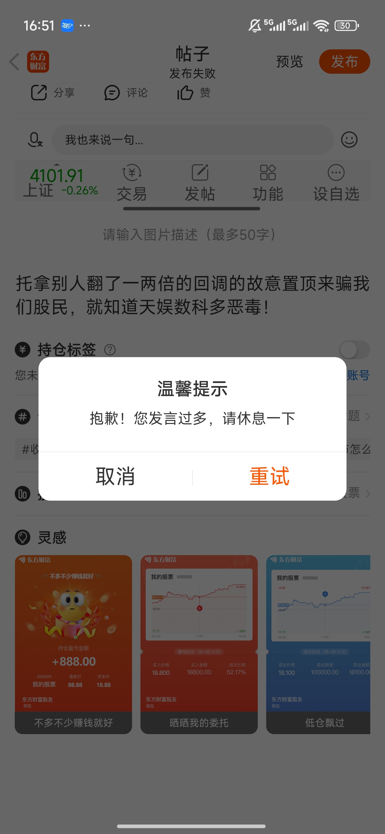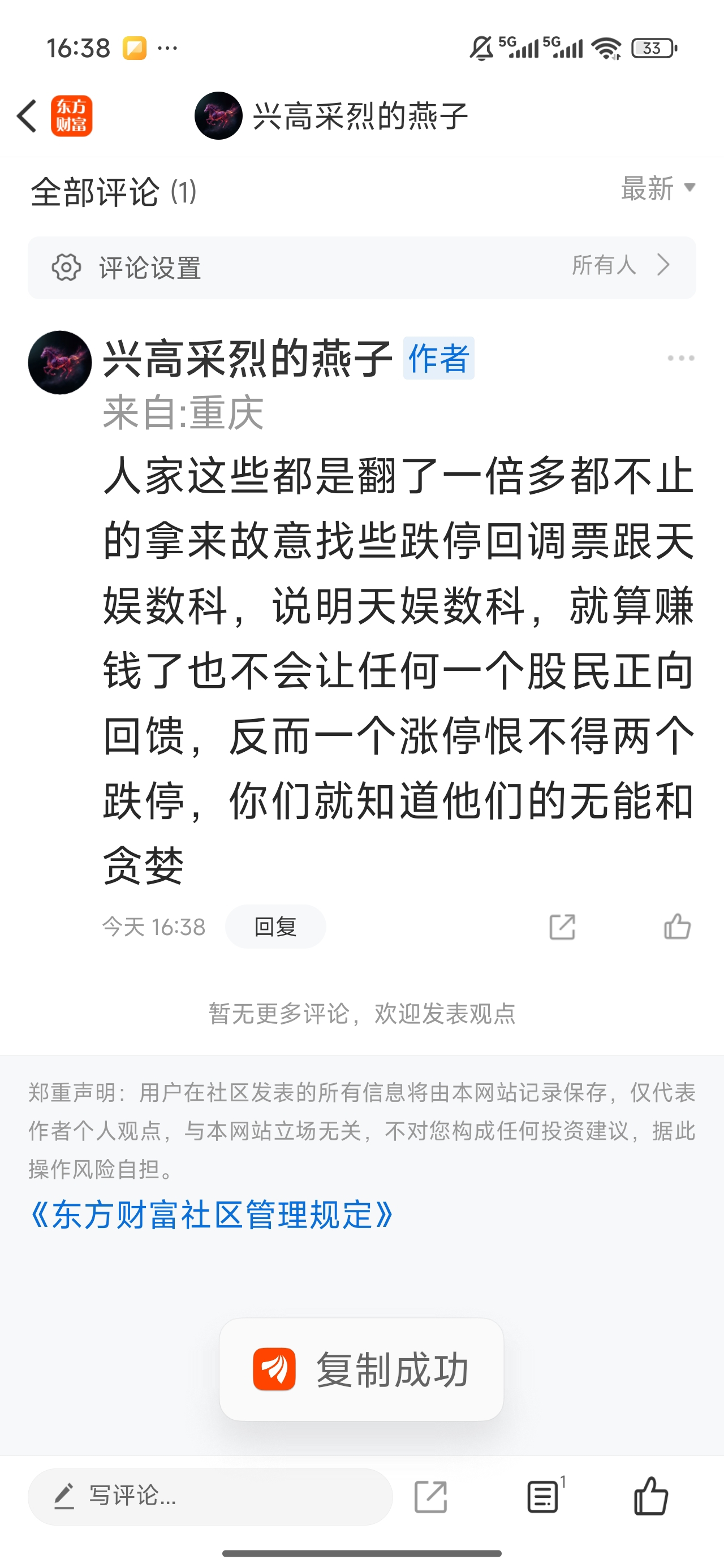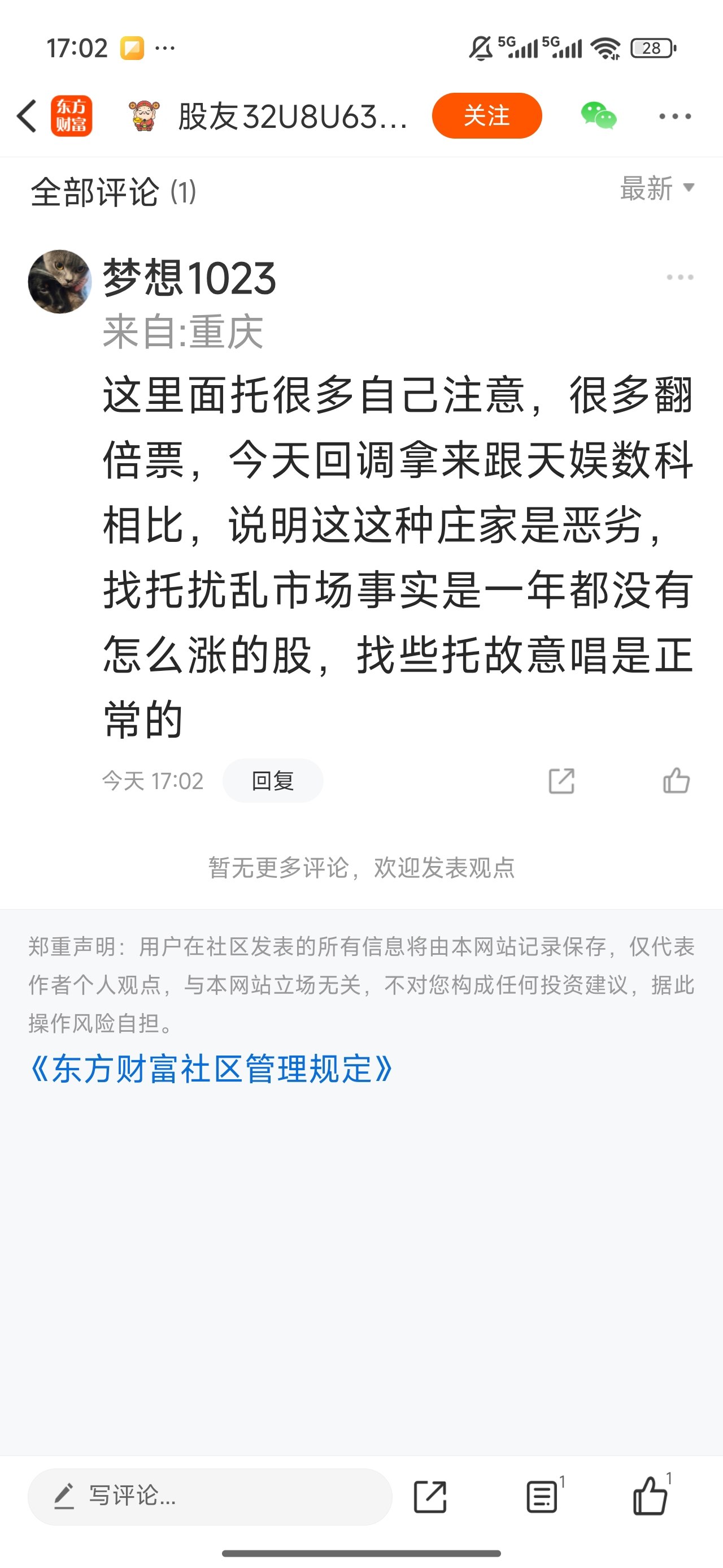 温馨提示: 1.根据《证券法》规定,禁止编造、传播虚假信息或者误导性信息,扰乱证券市场;2.用户在本社区发表的所有资料、言论等仅代表个人观点,与本网站立场无关,不对您构成任何投资建议。用户应基于自己的独立判断,自行决定证券投资并承担相应风险。《东方财富社区管理规定》