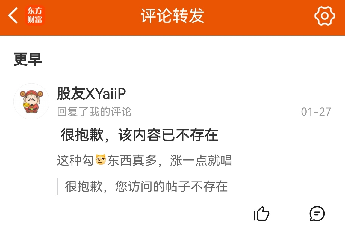 温馨提示: 1.根据《证券法》规定,禁止编造、传播虚假信息或者误导性信息,扰乱证券市场;2.用户在本社区发表的所有资料、言论等仅代表个人观点,与本网站立场无关,不对您构成任何投资建议。用户应基于自己的独立判断,自行决定证券投资并承担相应风险。《东方财富社区管理规定》
