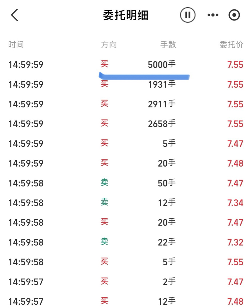 如果是天娱的老玩家,天娱这种最后1秒进来的5000手的单子进来的都知道是进来干嘛