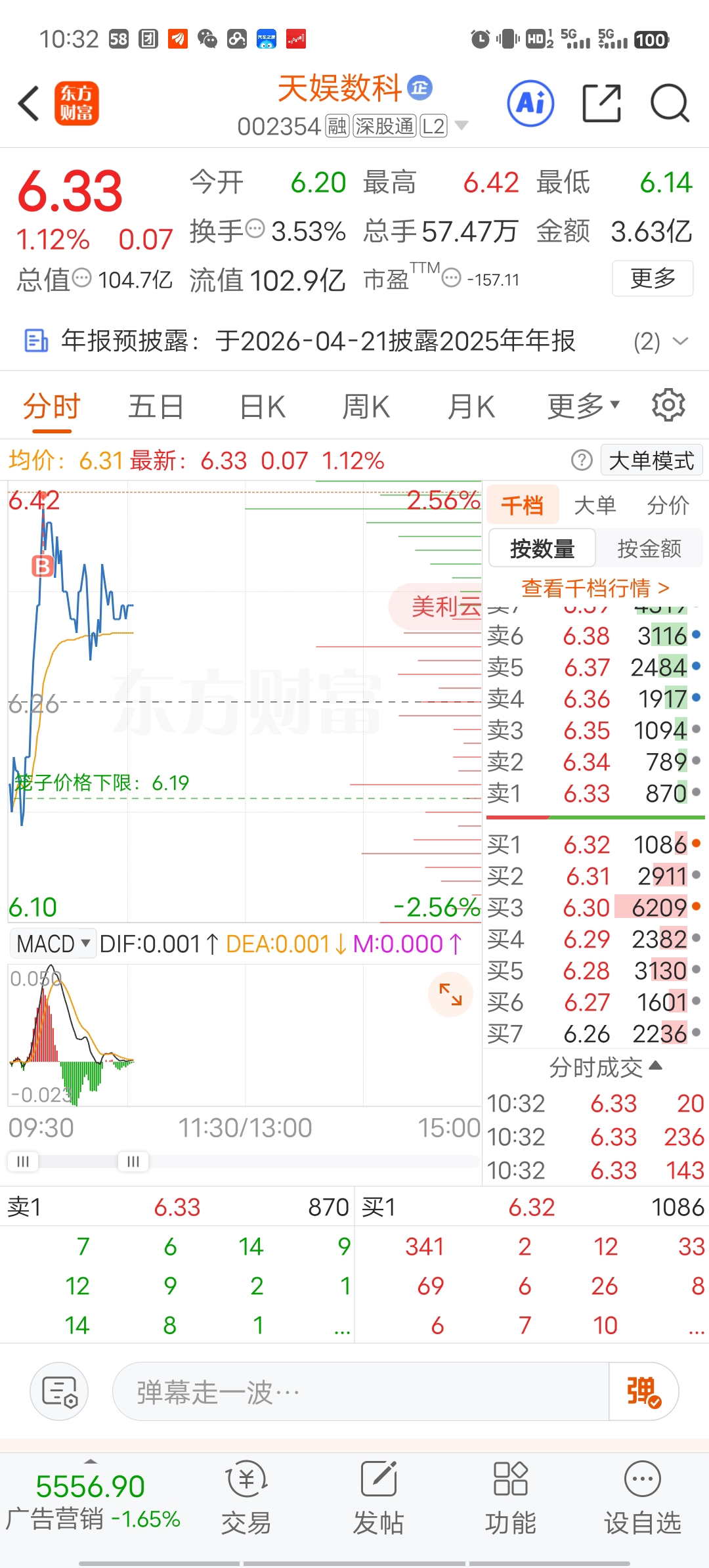 $天娱数科(SZ002354)$ 6.41万手哥,把我骗进去了