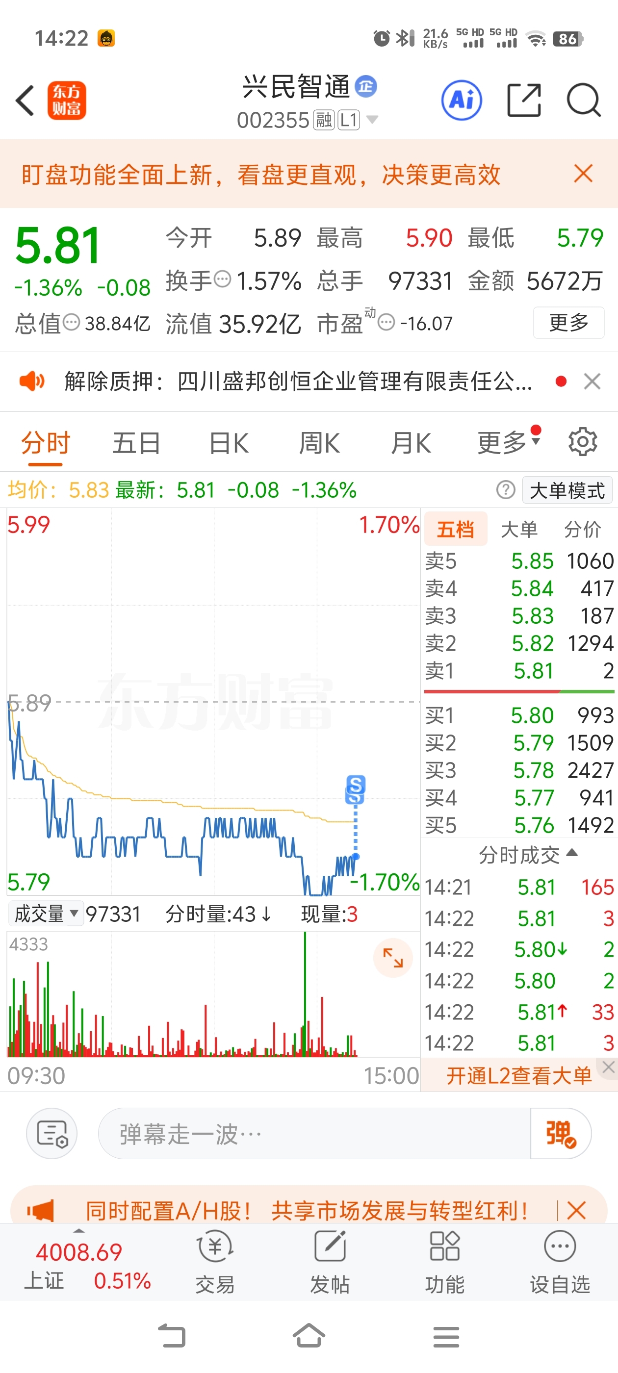 $兴民智通(SZ002355)$ 走了,亏了十七块