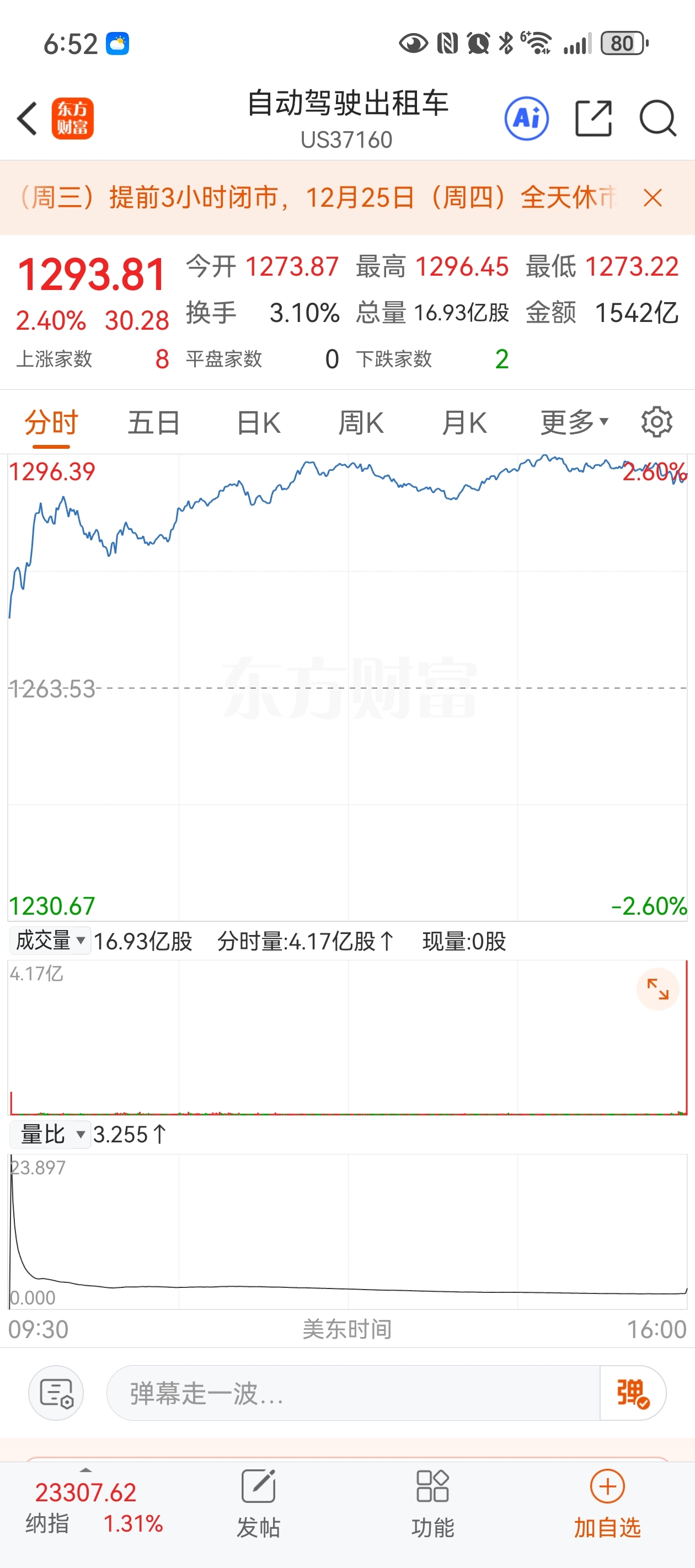$兴民智通(SZ002355)$ 前两天添加的新概念网约车,百度的萝卜快跑。美股板块大涨,周一是不是稳了!