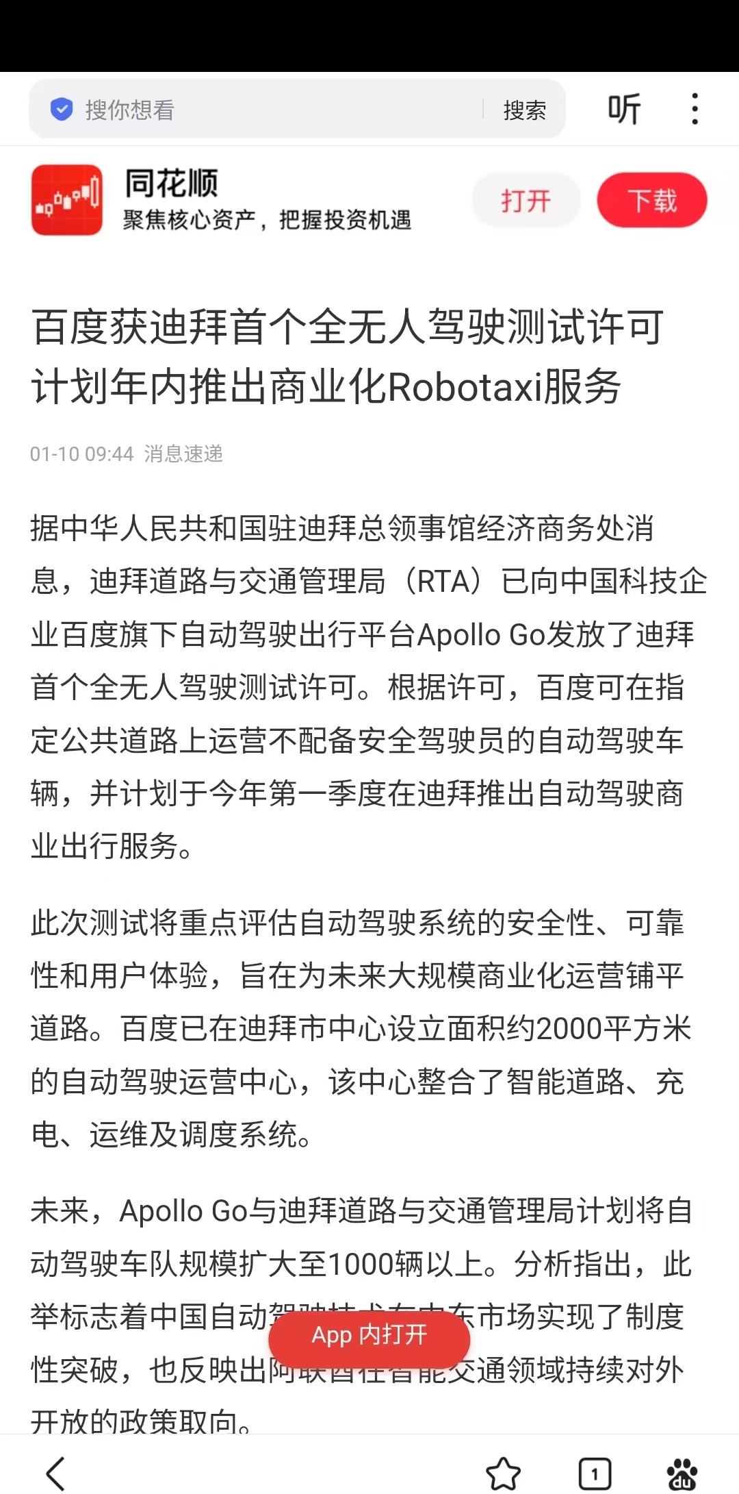 百度Apollo获迪拜首个全无人驾驶测试许可,兴民智通是其核心战略合作伙伴