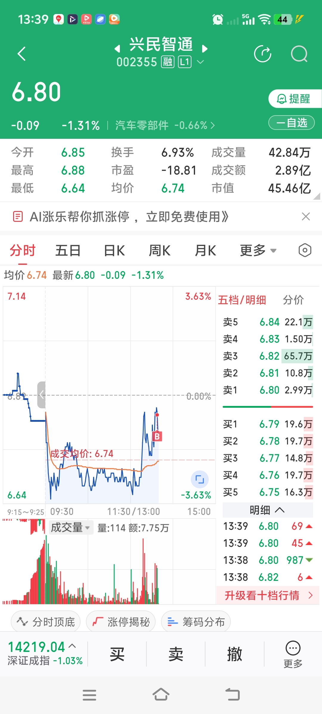 $兴民智通(SZ002355)$ 看到世宝板了,索菱拉升两个点于是进这绿的兴民,结果进来就亏一个点,怎么不跟呢