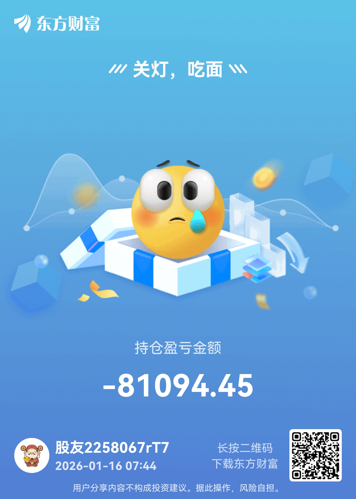 温馨提示: 1.根据《证券法》规定,禁止编造、传播虚假信息或者误导性信息,扰乱证券市场;2.用户在本社区发表的所有资料、言论等仅代表个人观点,与本网站立场无关,不对您构成任何投资建议。用户应基于自己的独立判断,自行决定证券投资并承担相应风险。《东方财富社区管理规定》