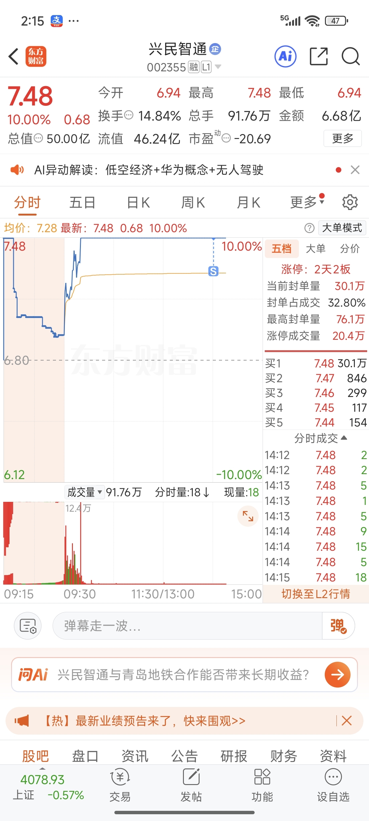 $兴民智通(SZ002355)$ 天天换票天天赚钱挺好!
