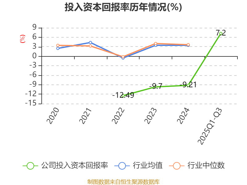 盈利能力方面, 2025年前三季度公司加权平均净资产收益率为8.76%,同比上升14.37个百分点。公司2025年前三季度投入资本回报率为7.2%,较上年同期上升13.94个百分点。