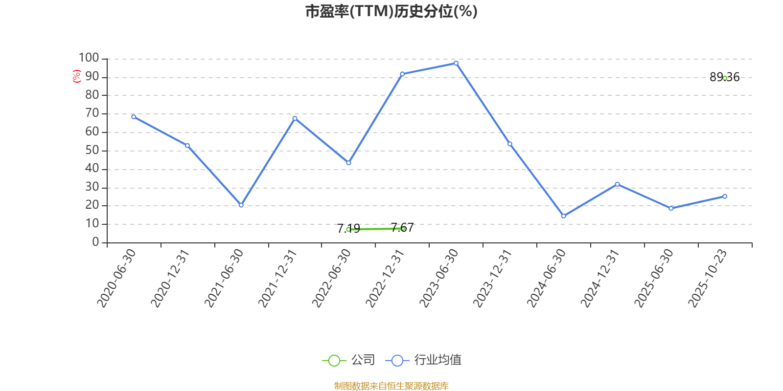 市盈率、市净率为负时,不显示当期分位数,会导致折线图中断。