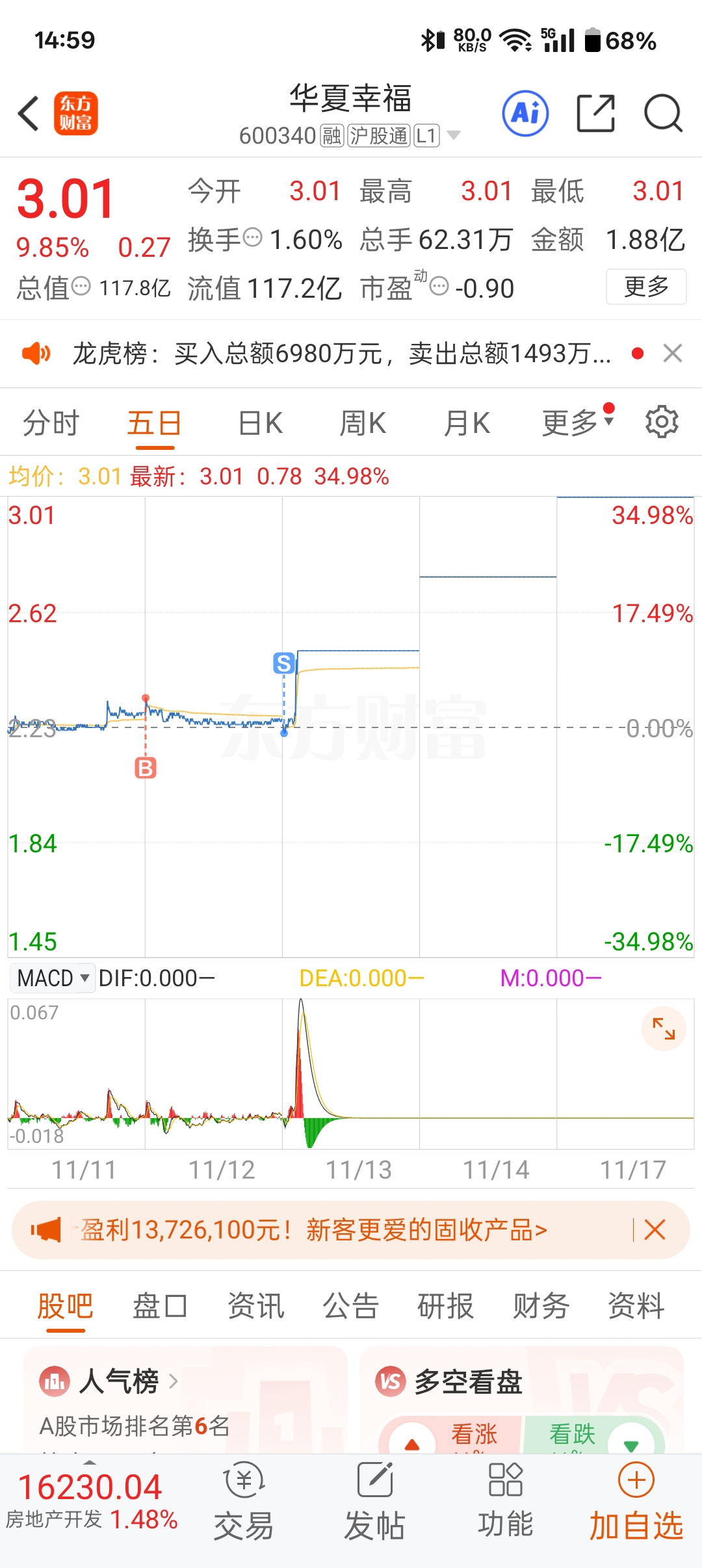 温馨提示: 1.根据《证券法》规定,禁止编造、传播虚假信息或者误导性信息,扰乱证券市场;2.用户在本社区发表的所有资料、言论等仅代表个人观点,与本网站立场无关,不对您构成任何投资建议。用户应基于自己的独立判断,自行决定证券投资并承担相应风险。《东方财富社区管理规定》