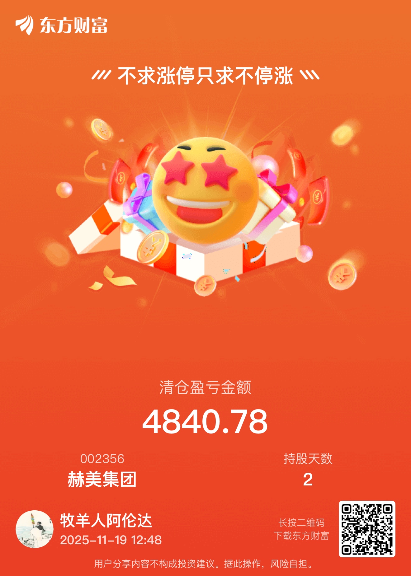 前天358买进的,吃个涨停盈利5100,还好昨天没卖,今天高开3.92走了,吃3