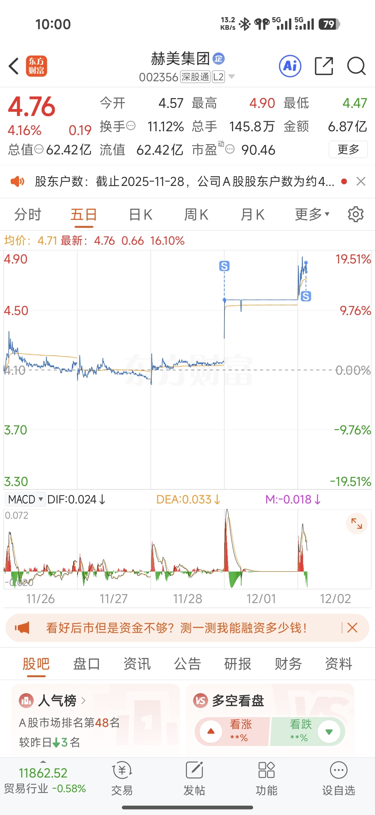 温馨提示: 1.根据《证券法》规定,禁止编造、传播虚假信息或者误导性信息,扰乱证券市场;2.用户在本社区发表的所有资料、言论等仅代表个人观点,与本网站立场无关,不对您构成任何投资建议。用户应基于自己的独立判断,自行决定证券投资并承担相应风险。《东方财富社区管理规定》