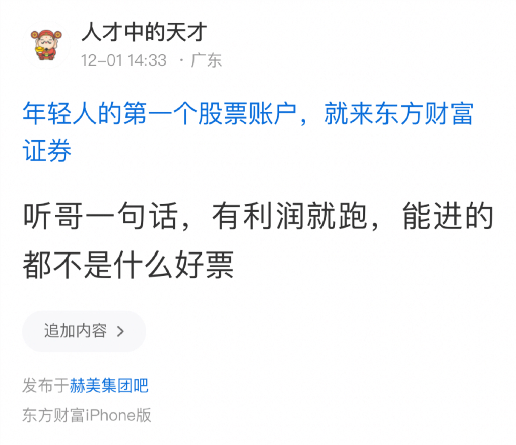 温馨提示: 1.根据《证券法》规定,禁止编造、传播虚假信息或者误导性信息,扰乱证券市场;2.用户在本社区发表的所有资料、言论等仅代表个人观点,与本网站立场无关,不对您构成任何投资建议。用户应基于自己的独立判断,自行决定证券投资并承担相应风险。《东方财富社区管理规定》
