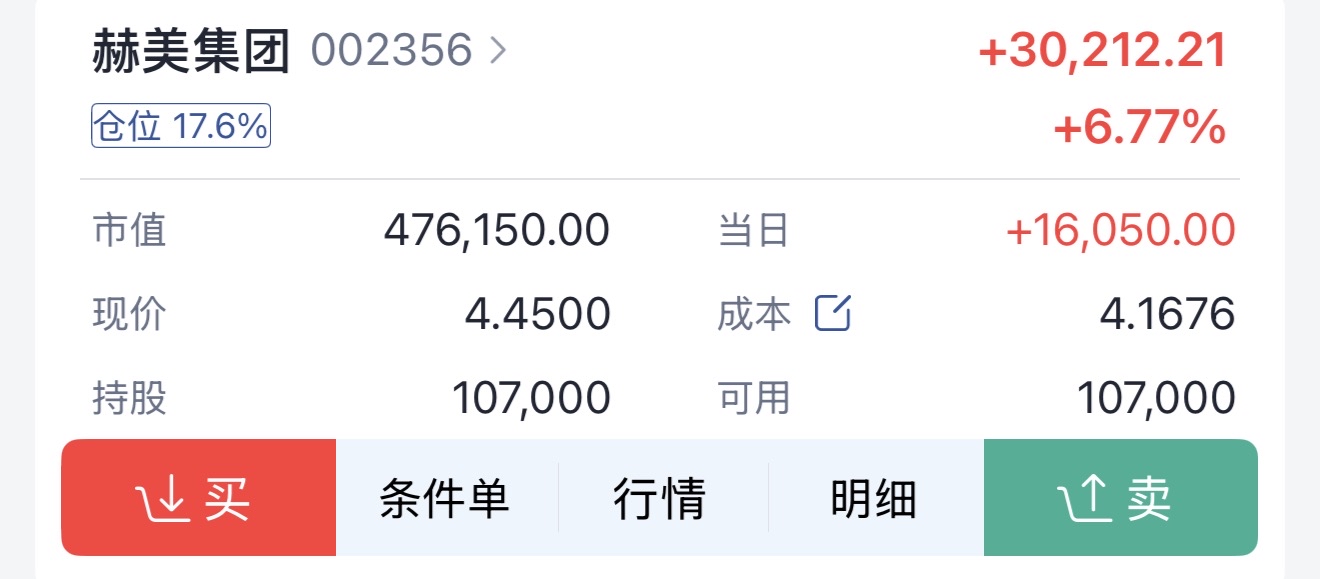$赫美集团(SZ002356)$ 你是我这个月持仓最弱的股!!!!拿了你一个月了!!!!!