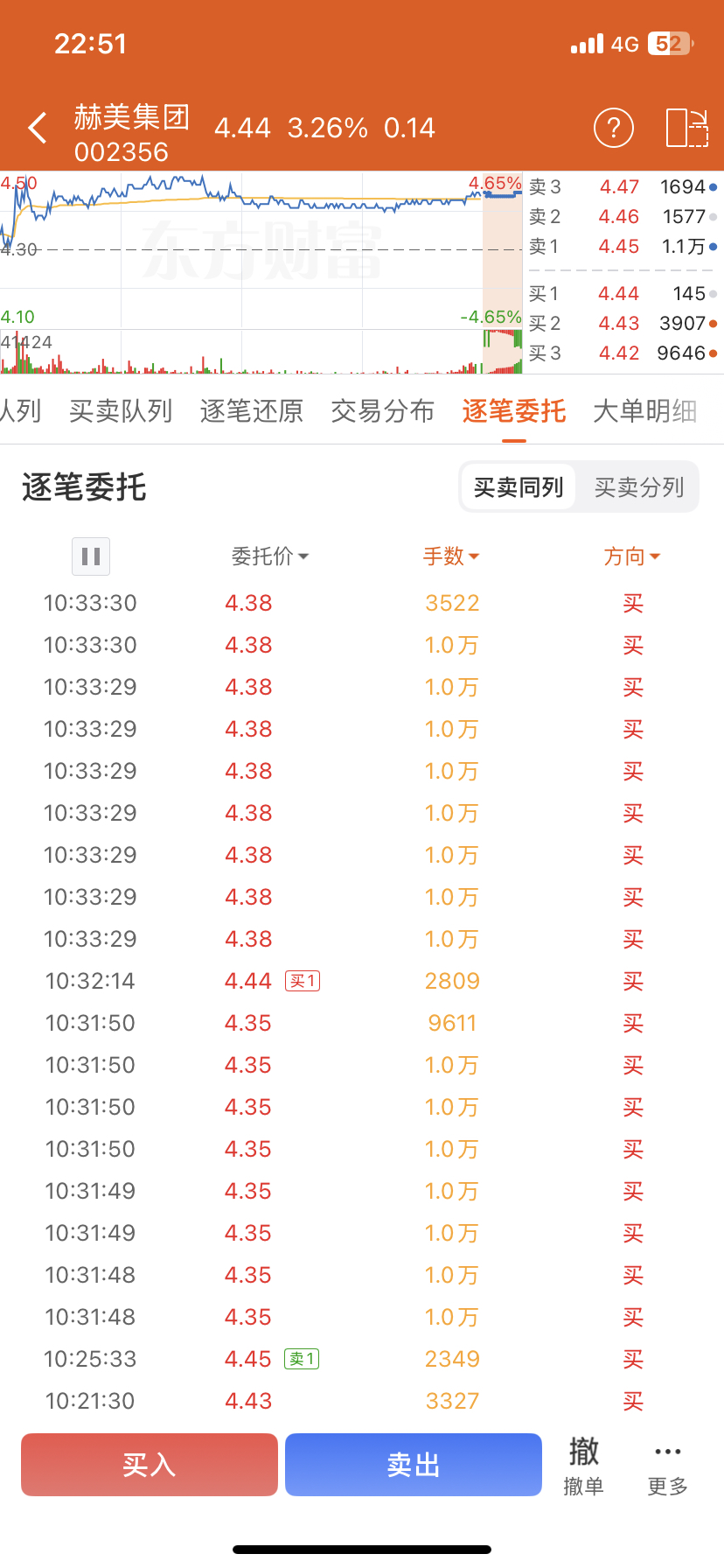 $赫美集团(SZ002356)$ 本来还没打算买,看到买5买6时不时挂这些托单果断4.47卖出