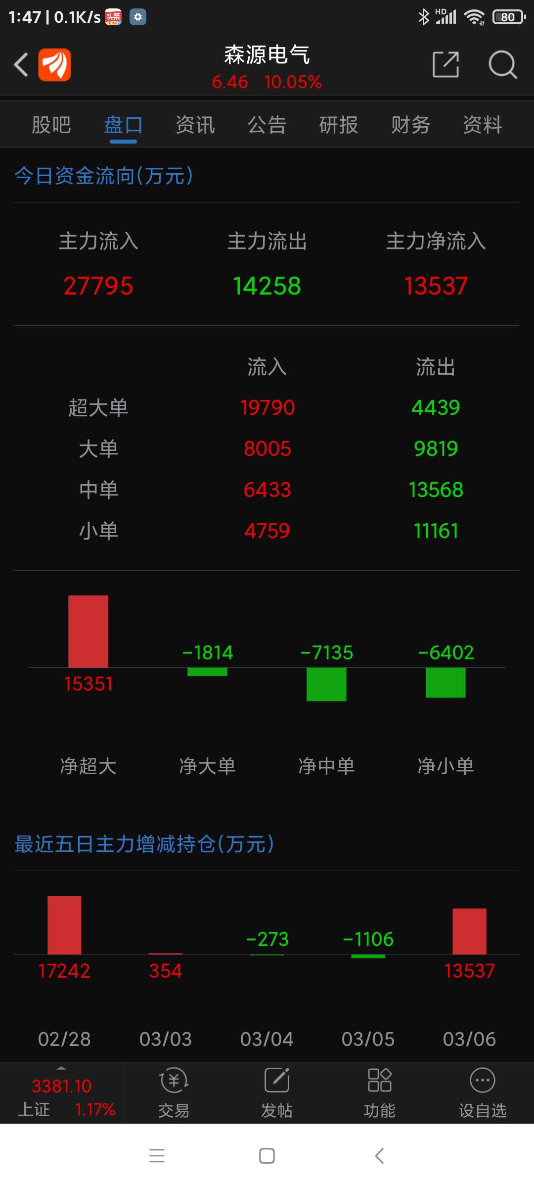 森源电气今日(250306四)涨幅名列河南板块第四名