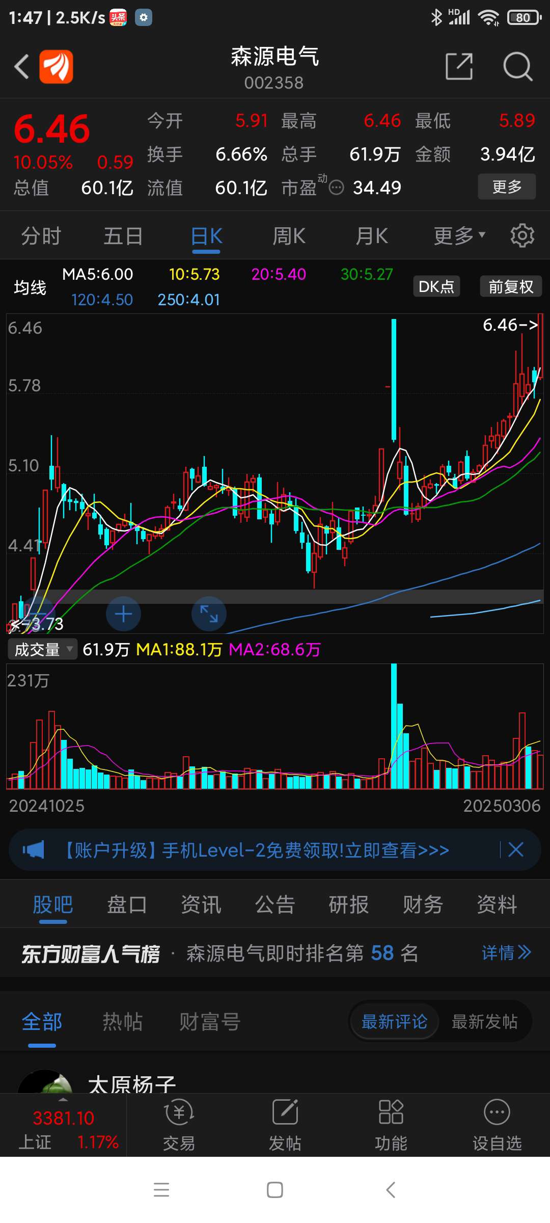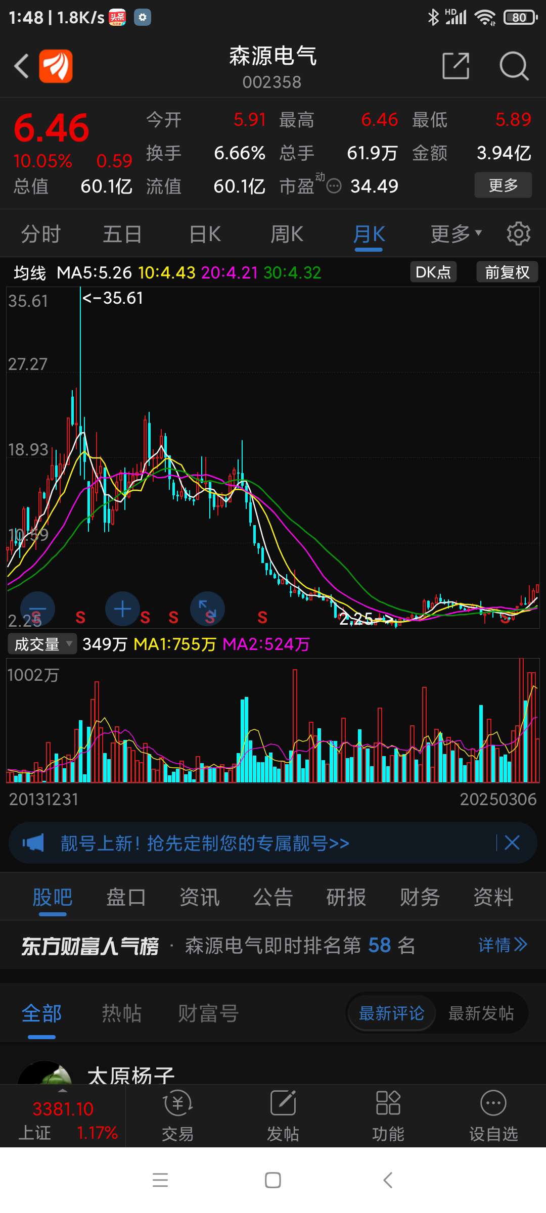 温馨提示: 1.根据《证券法》规定,禁止编造、传播虚假信息或者误导性信息,扰乱证券市场;2.用户在本社区发表的所有资料、言论等仅代表个人观点,与本网站立场无关,不对您构成任何投资建议。用户应基于自己的独立判断,自行决定证券投资并承担相应风险。《东方财富社区管理规定》