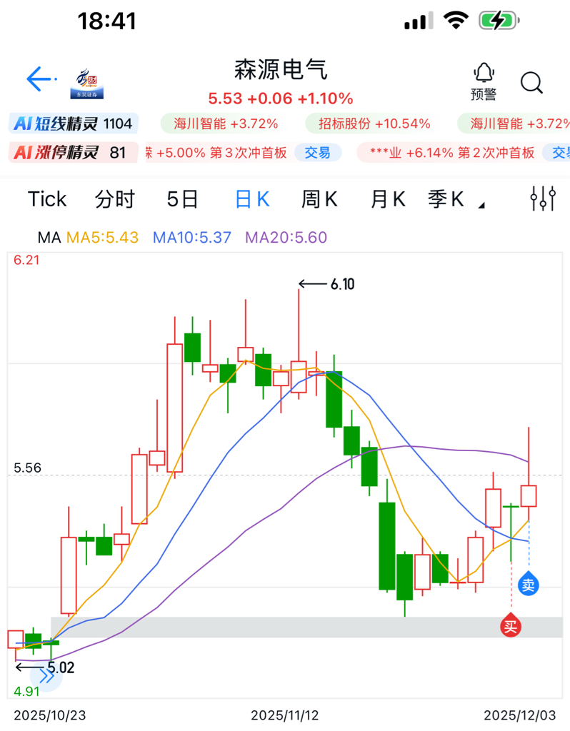 $森源电气(SZ002358)$ 昨天进没有忍住就卖了,现在做交易非常苛刻,得从那么多票子里面选出不跟跌,反而反弹的票子,明天看情况要不要继续建仓