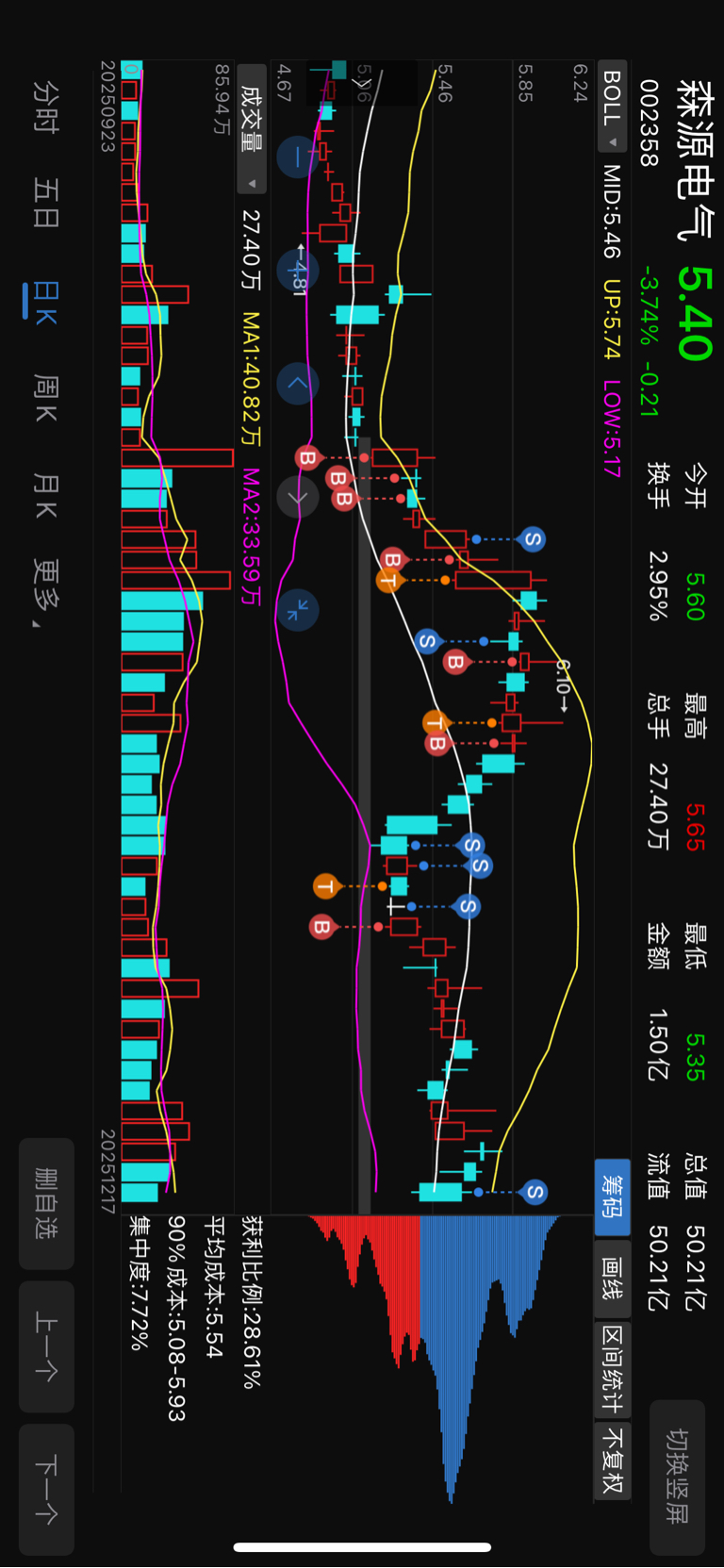 $森源电气(SZ002358)$ 5.40走了,5.94原本清仓了的,结果又t进去满仓了,低点割肉又低点买进了,前天5.80解套了没走,成本5.79,就没走,才两天就这熊样,熬不起了,我走了,两波电网大涨,森源都不理想,涨跟不上,板块回落又成带头大哥了,本钱少,也不会做t,老是做反t,清仓了,也就亏两千多,个把月白瞎你身上了,大家再见