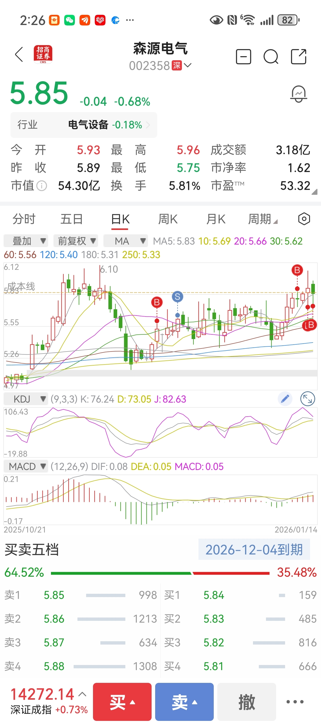 $森源电气(SZ002358)$ 加油上6元