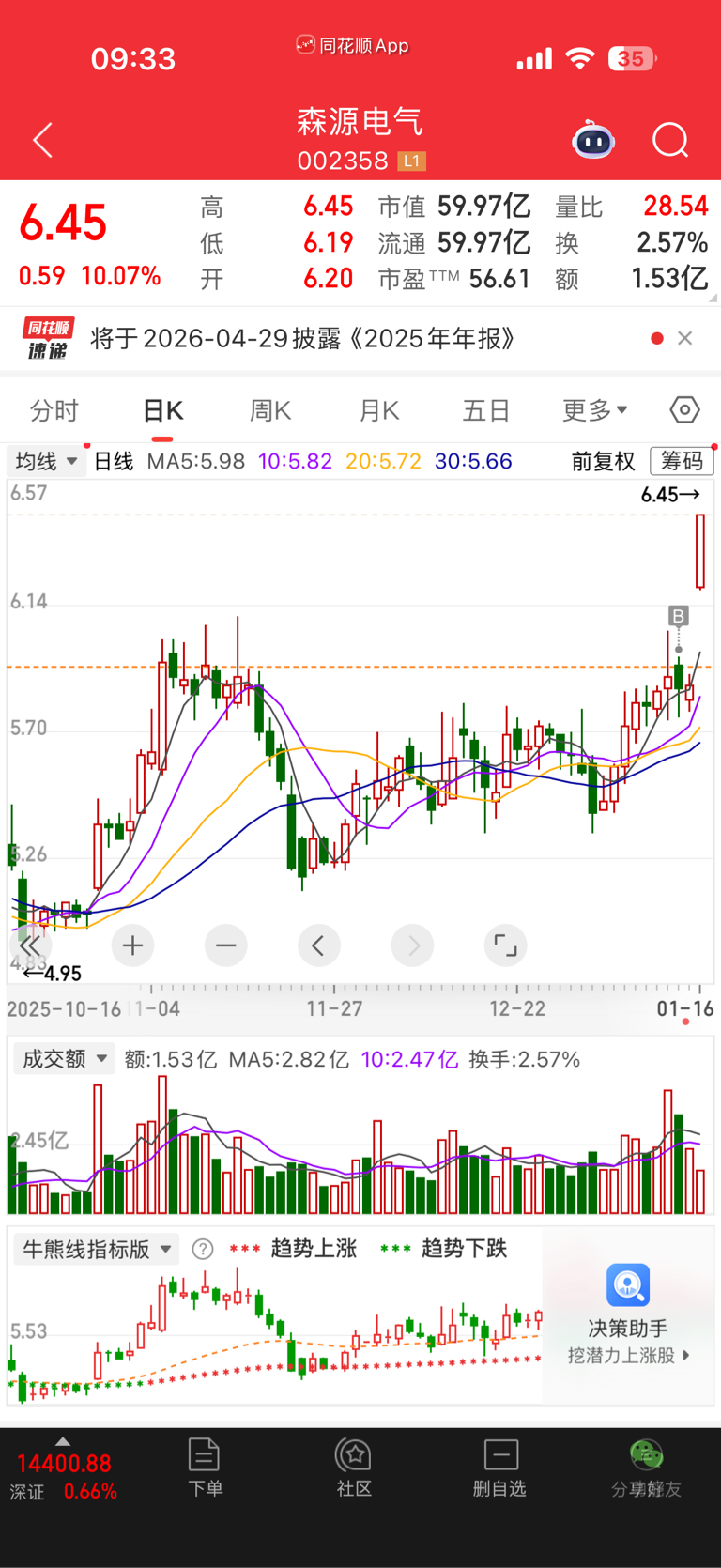 $森源电气(SZ002358)$ 菜鸟也有春天!