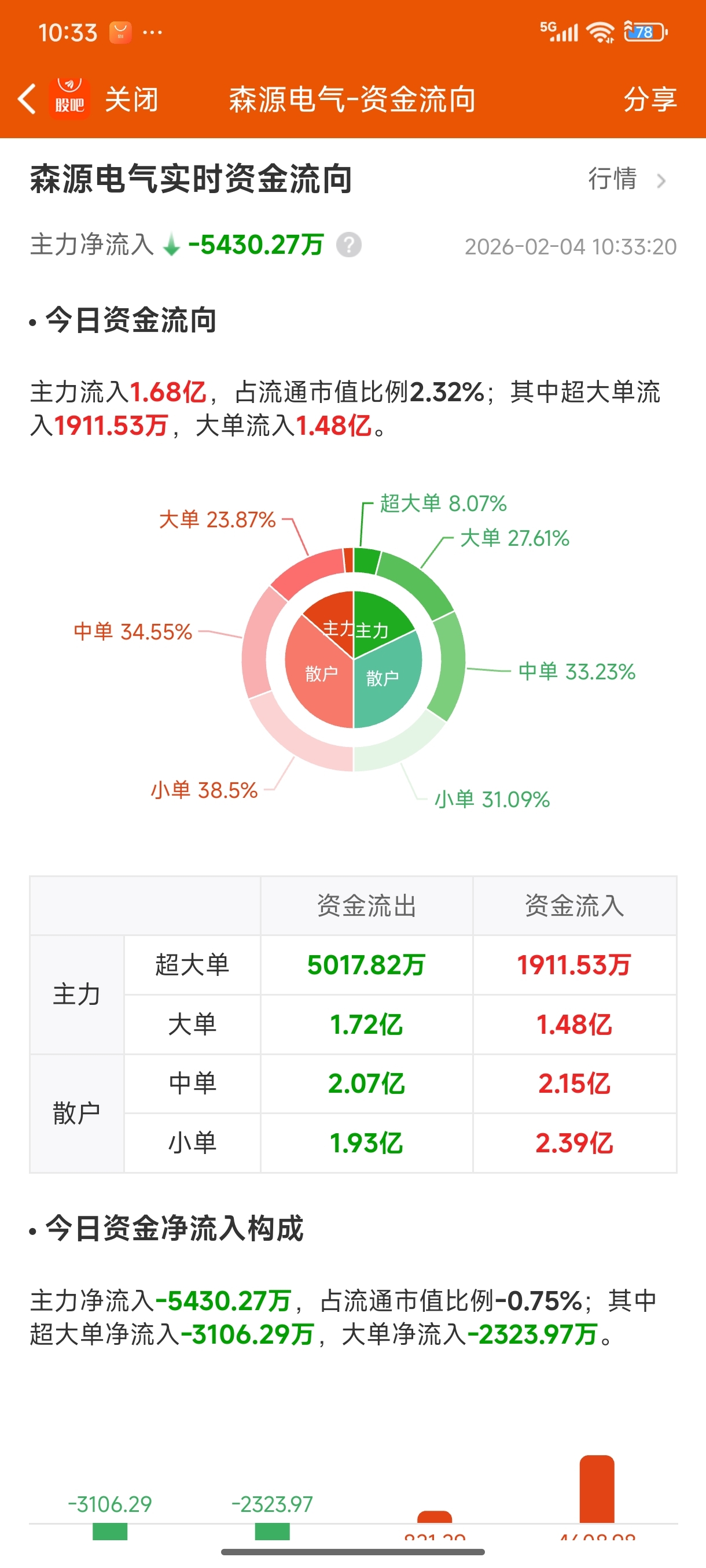 $森源电气(SZ002358)$ 一个小时主力才跑出来5千多万