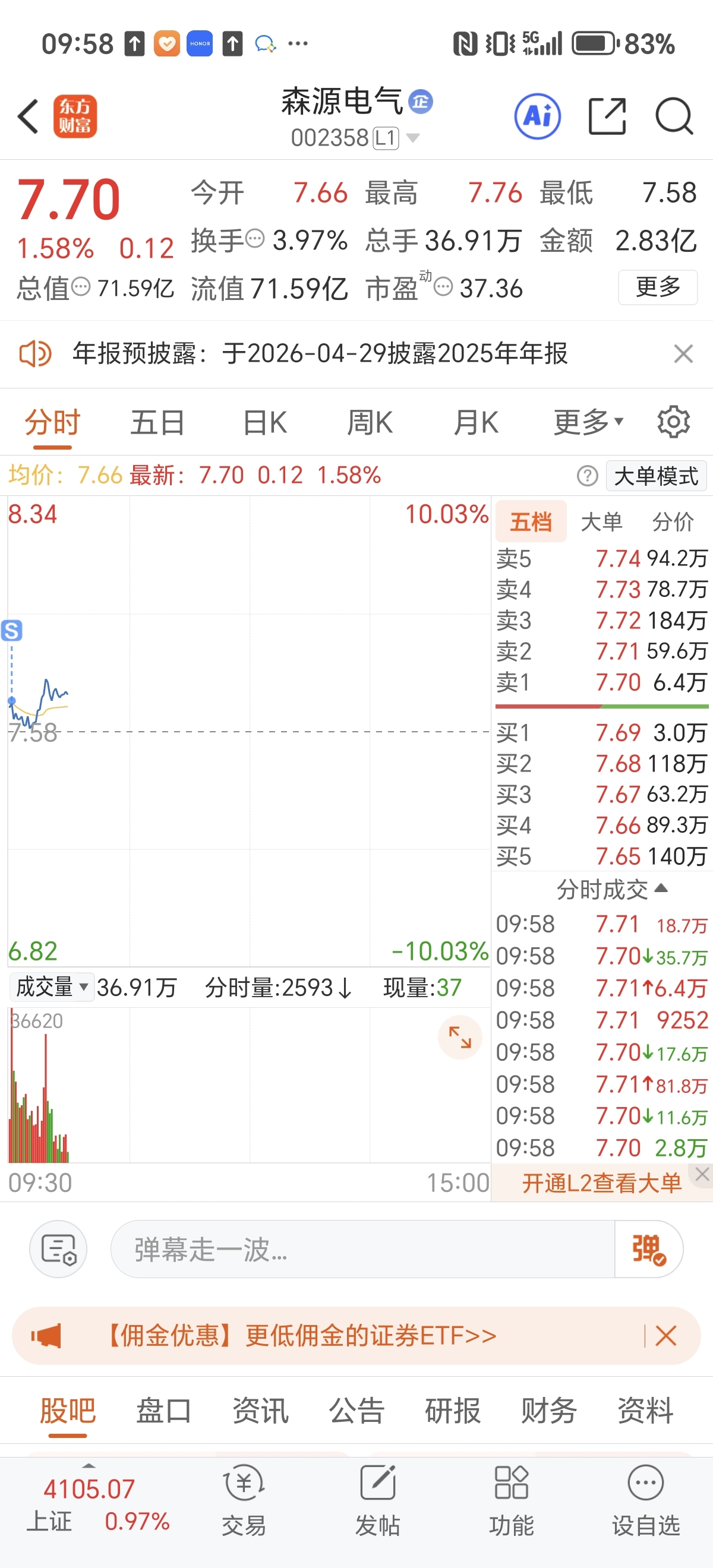 $森源电气(SZ002358)$ 早上看分时不强就卖了,果然卖低了