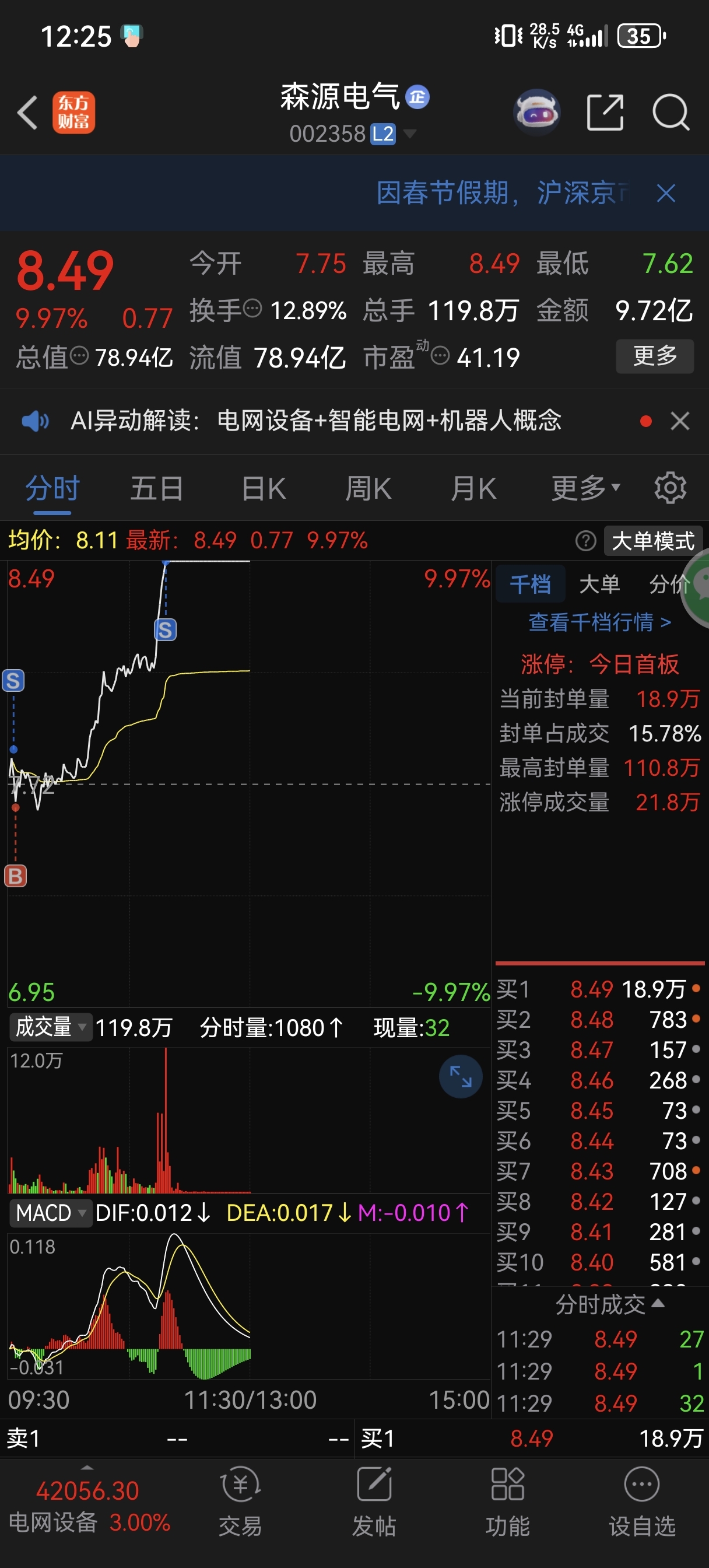 $森源电气(SZ002358)$ 稳如老 留了半仓 明天择机再卖一些,成本负了就长持留着当基金了
