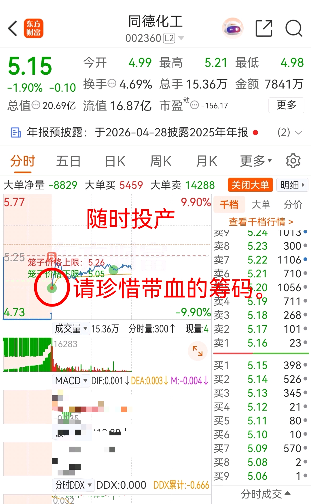 $同德化工(SZ002360)$ 上周委托已成交恐怖分子已控制,筹码在我手上。