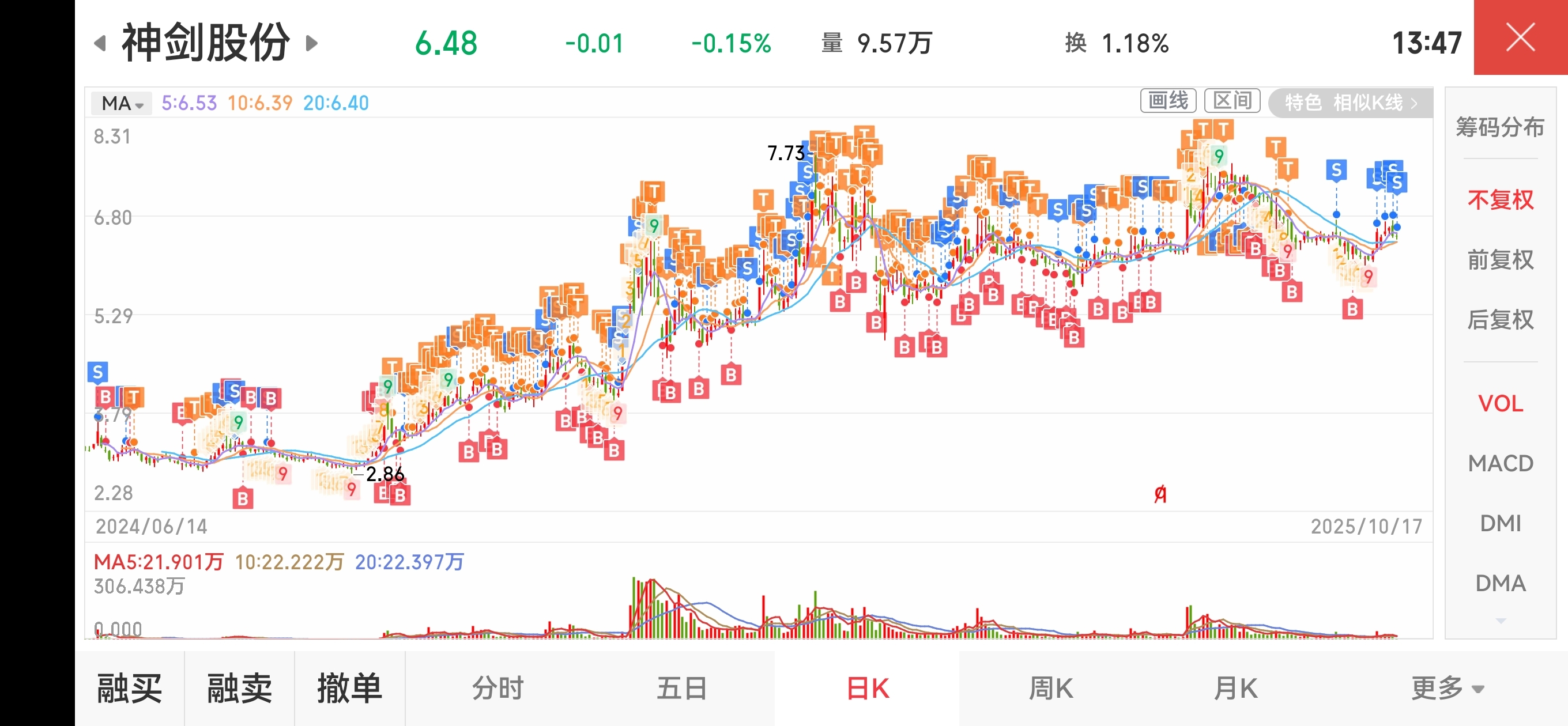 还是神剑好,早期我用权重股在防守神剑,现在用神剑获利盘在低吸权重酬码。这波下来我