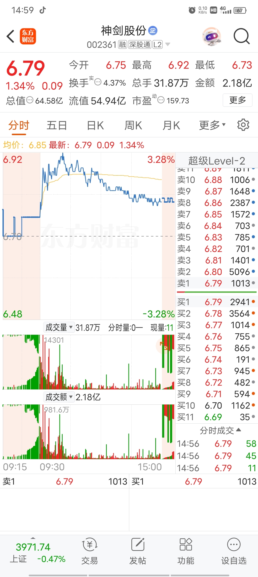 $神剑股份(SZ002361)$ 嗯今天狠秀,涨一天跌四天开始了