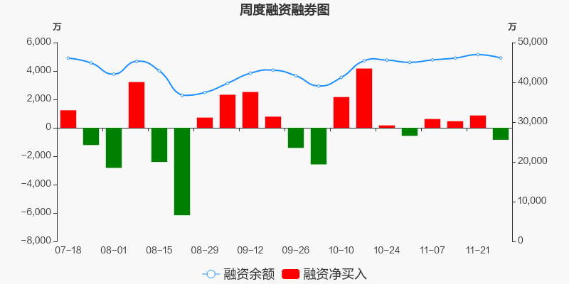 神剑股份本周(2025/11/24-2025/11/28)累计涨幅达1.12%,截至11月28日最新股价报收6.34元。从增量上来看,11月24日至11月27日融资买入交易规模3257.89万元,融资偿还规模4101.93万元,期内融资净偿还844.04万元。从存量上来看,截止11月30日,神剑股份融资融券余额4.61亿元,其中融资余额规模4.61亿元,融券余额规模0元。