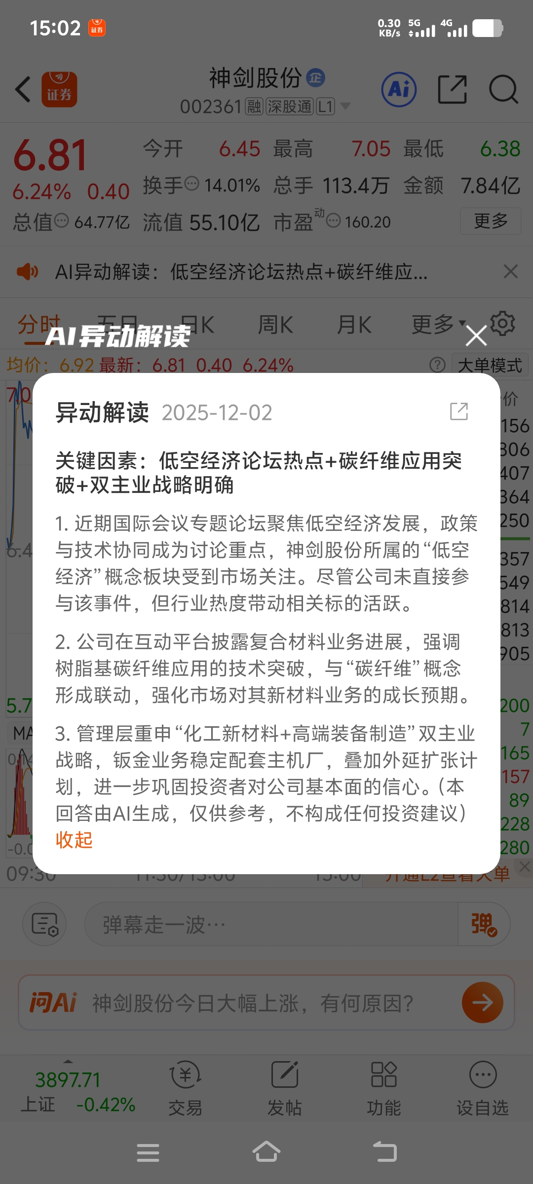 $神剑股份(SZ002361)$ 这都没涨停,明天又该何去何从呢?会不会反包?
