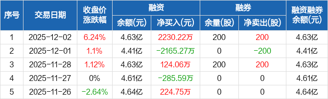 神剑股份:融资净买入2230.22万元,融资余额4.63亿元(12-02)