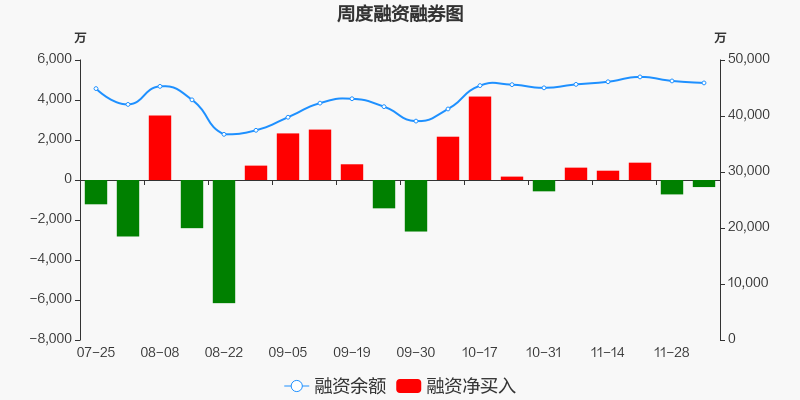 神剑股份本周(2025/12/01-2025/12/05)累计涨幅达5.05%,截至12月5日最新股价报收6.66元。从增量上来看,12月1日至12月4日融资买入交易规模1.7亿元,融资偿还规模1.73亿元,期内融资净偿还352.83万元。从存量上来看,截止12月7日,神剑股份融资融券余额4.59亿元,其中融资余额规模4.59亿元,融券余额规模0元。