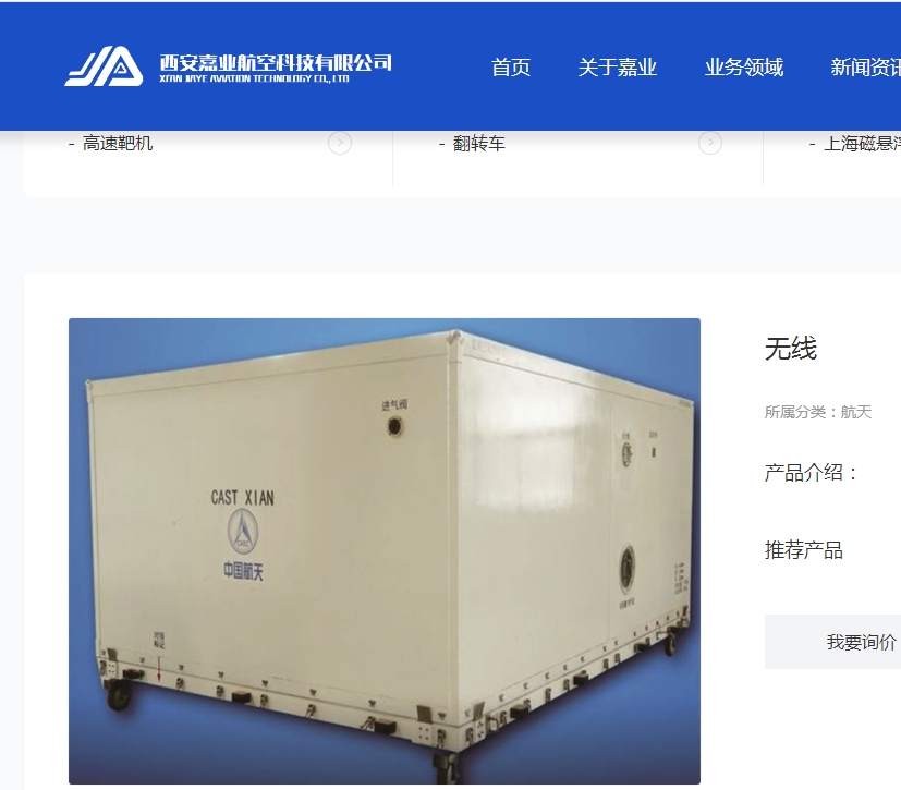 全资子公司西安嘉业航空官网上的产品涉及多项航空航天!!!放那儿几年了,就是不知道