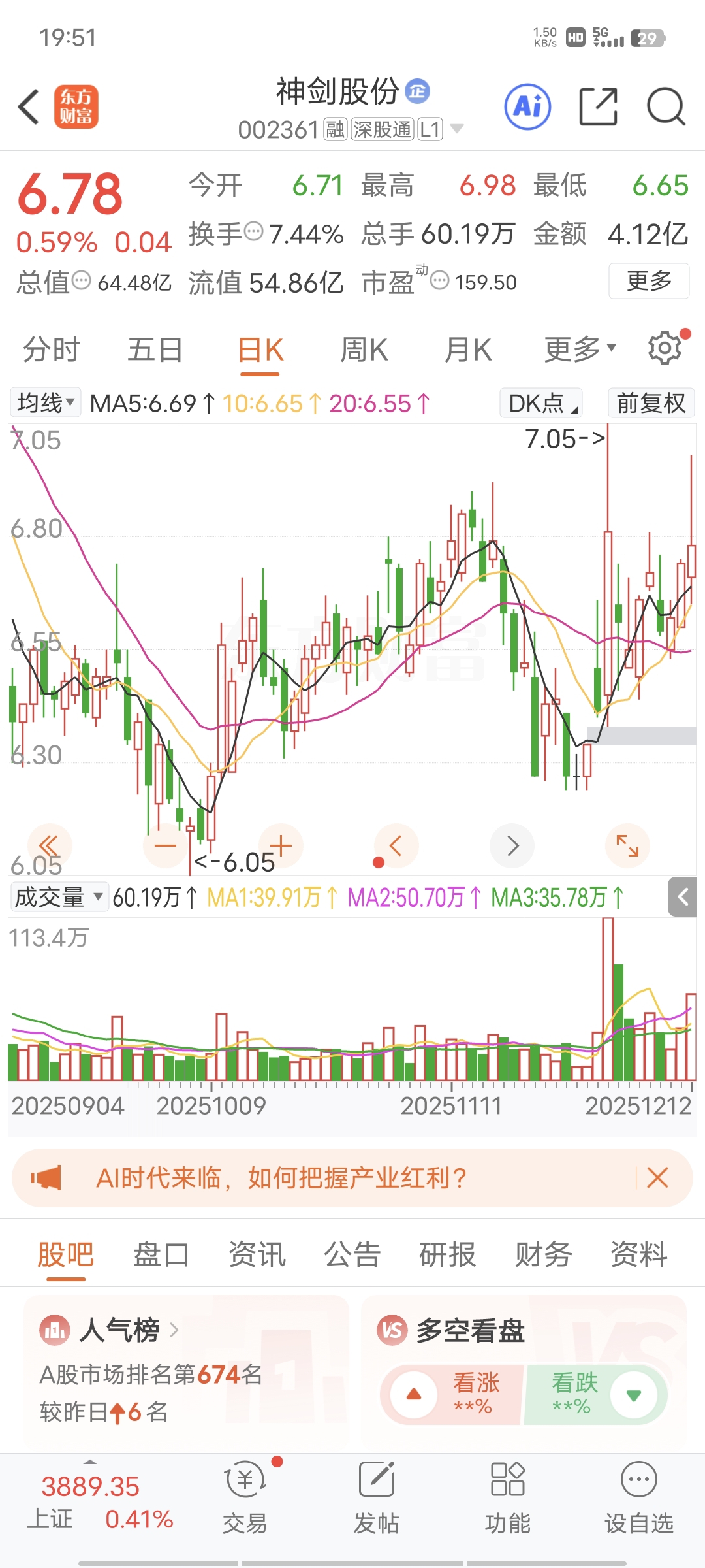 $神剑股份(SZ002361)$ 星期一要放量突破了,这次回踩20均线连续3天温和放量,在不突破就要跑路了