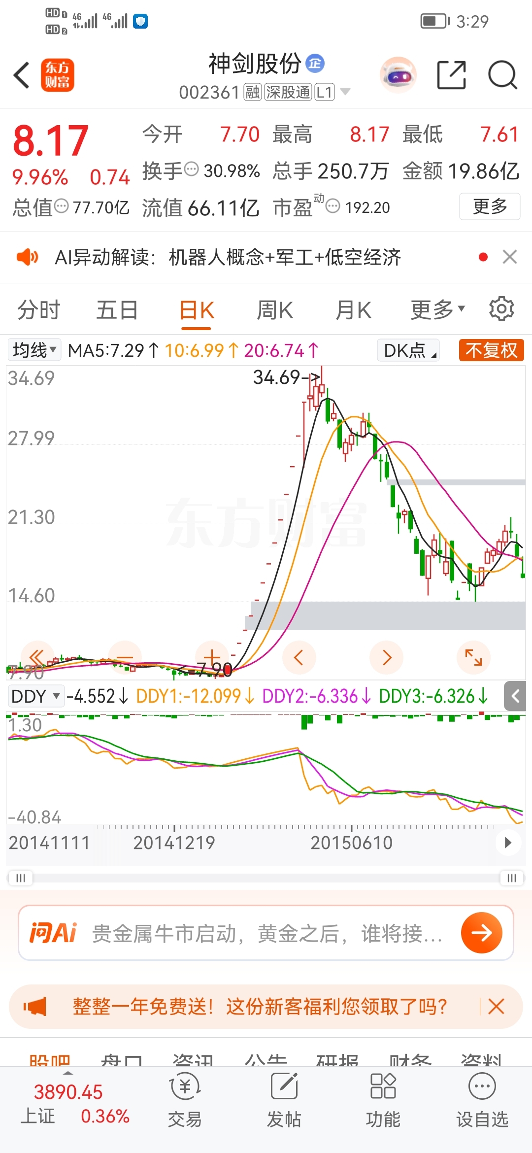 $神剑股份(SZ002361)$ 启动位置差不多,这种走势大家可喜欢?